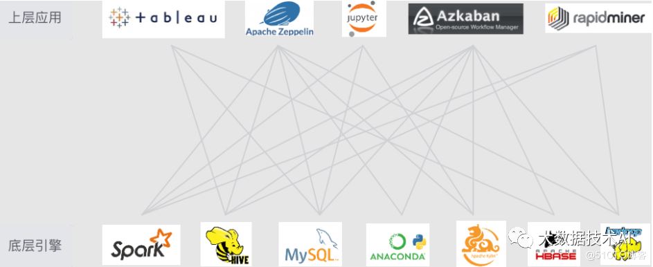 上层应用以紧耦合方式直连底层引擎,使得数据平台变成复杂的网状结构