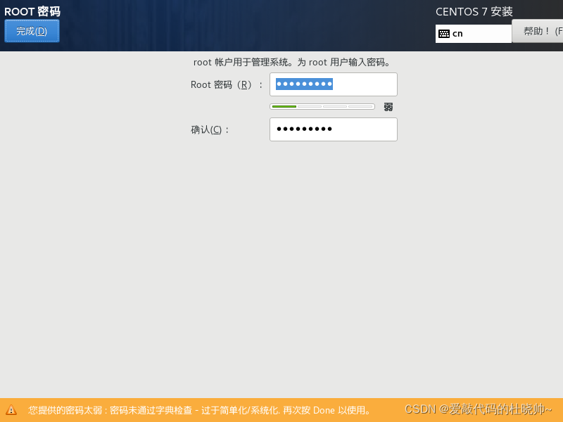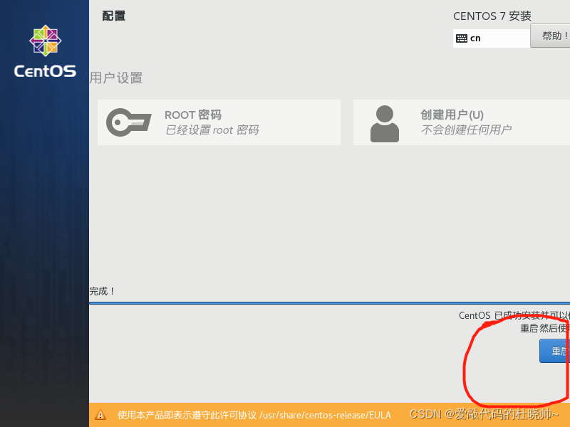 再设置密码后重启就安装好了