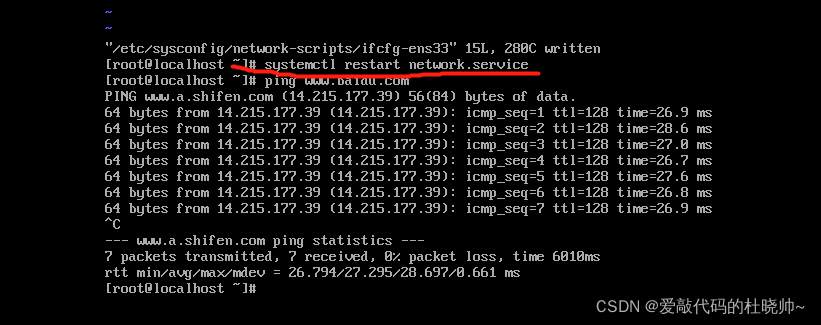 重启网络服务命令:systemctl restart network.service