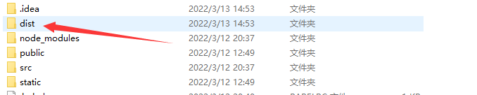 COPY dist/ /usr/share/nginx/html/:将项目根目录下dist文件夹(构建之后才会生成)下的所有文件复制到镜像/usr/share/nginx/html/目录下如下三个文件保持在同一目录