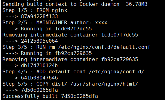 docker build -t xxxx .注意不要少了最后的“.”(点) -t是给镜像命名,.(点)是基于当前目录的Dockerfile来构建镜像