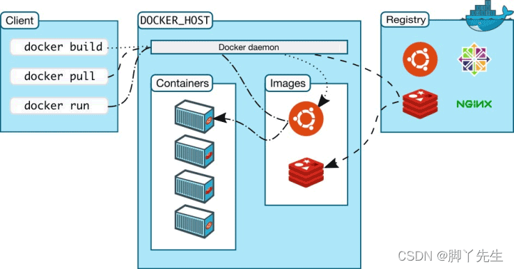 从上节,我们可以知道Docker使用的是C/S架构,Client 通过接口与Server进程通信实现容器的构建,运行和发布。client和server可以运行在同一台集群,也可以通过跨主机实现远程通信。