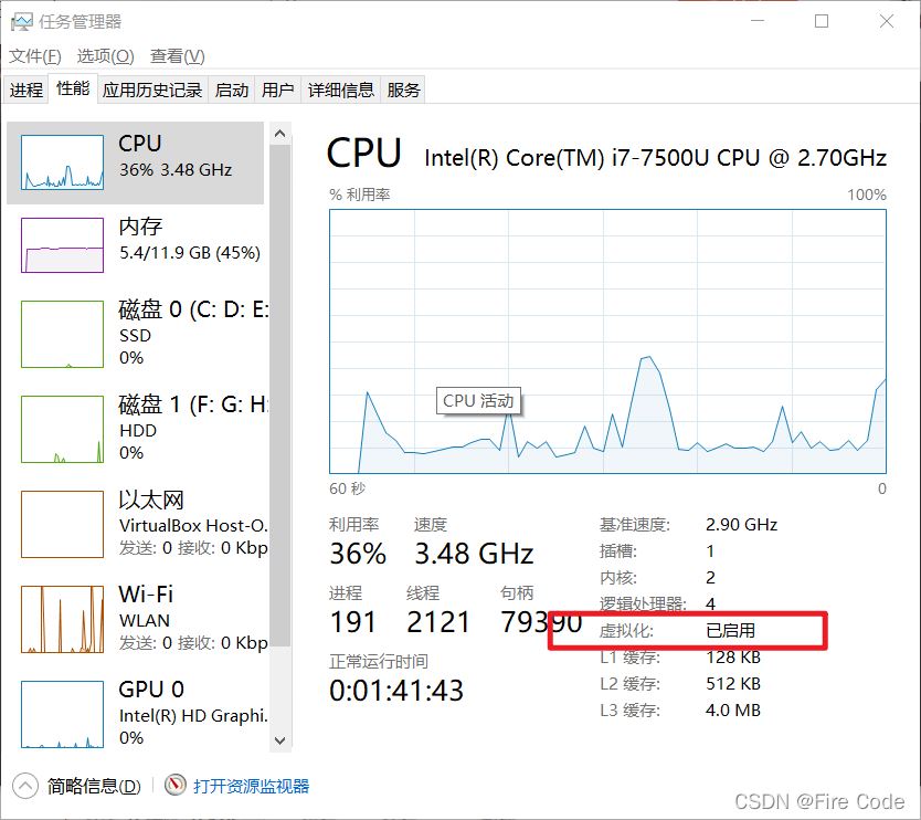 1、电脑CPU一般都会默认被虚拟化,如下图所示: