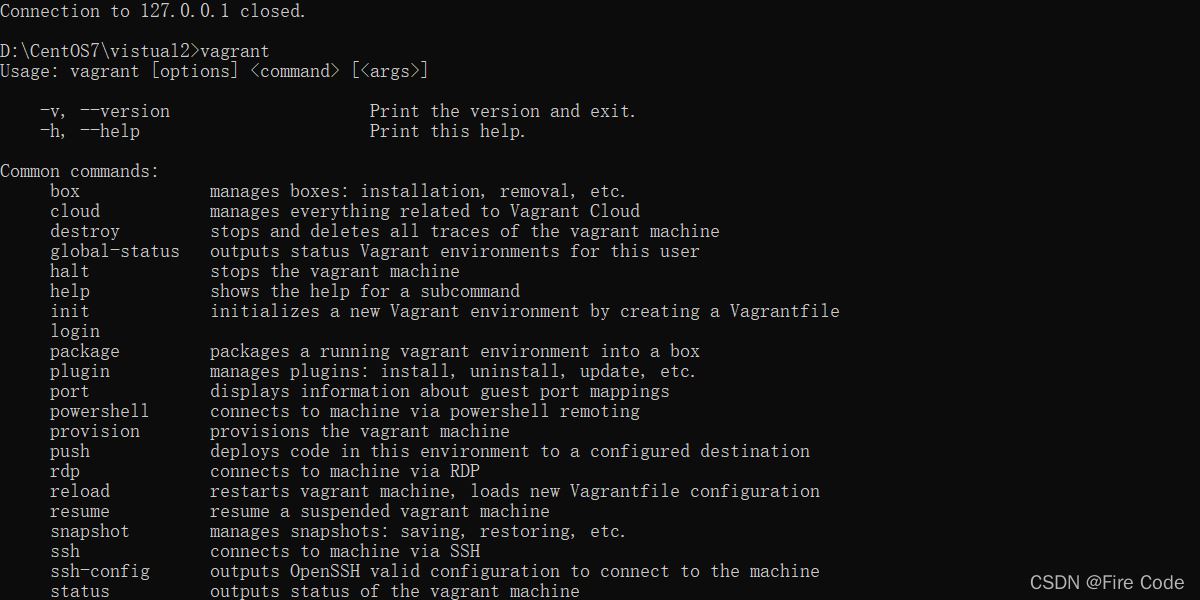 检查Vagrant是否安装成功,提示命令即代表安装成功。