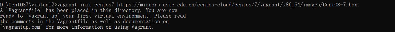 vagrant init centos7 https://mirrors.ustc.edu.cn/centos-cloud/centos/7/vagrant/x86_64/images/CentOS-7.box