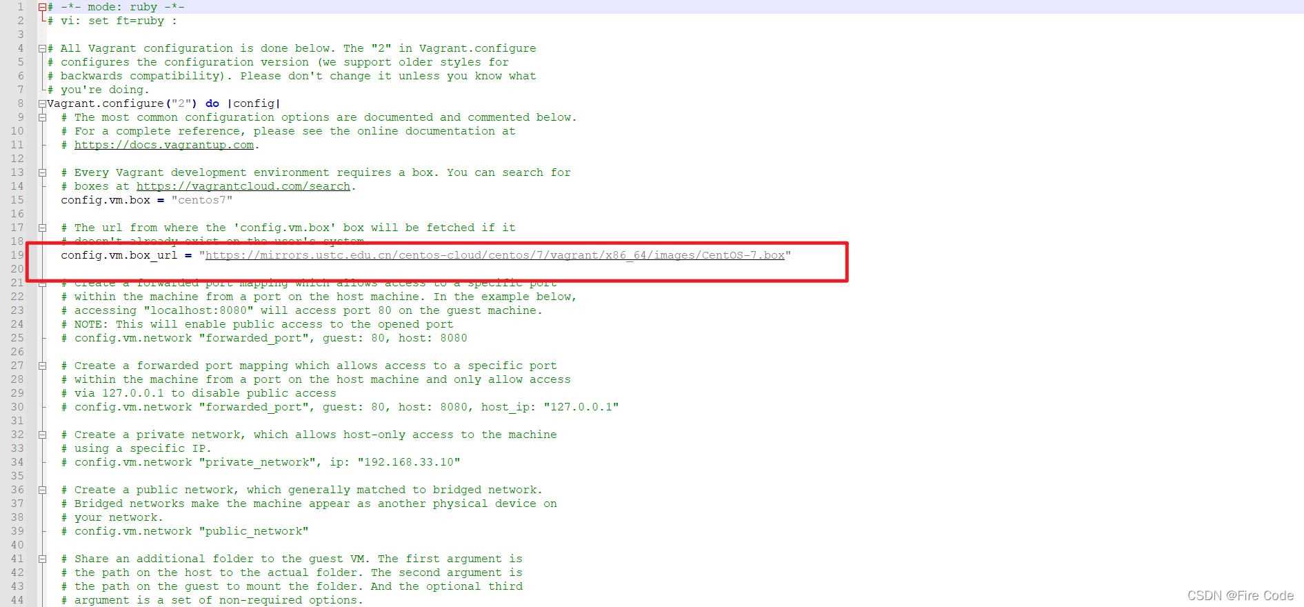 这样生成的Vagrantfile文件会将默认下载虚拟机的链接换为上面的镜像,大大提高下载速度。