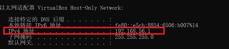 这里的IP前三段需要查看Windows中VirtualBox的IP地址与其保持一致,最后一部分随意。
