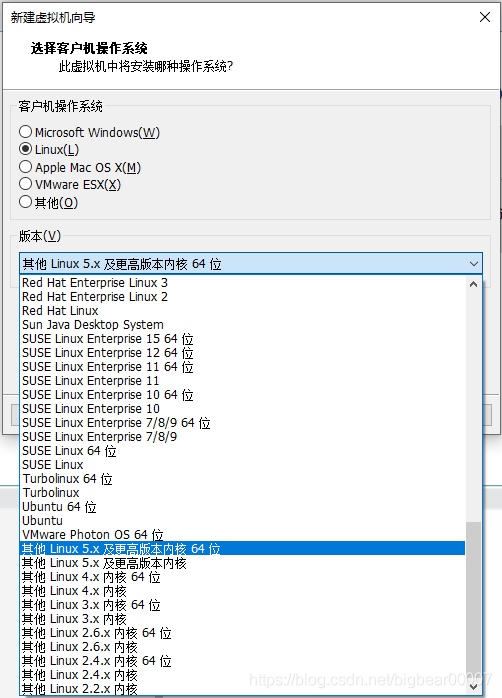 步骤5:系统选择(系统类型选择 Linux ,版本选择 Linux 5.x 64位)
