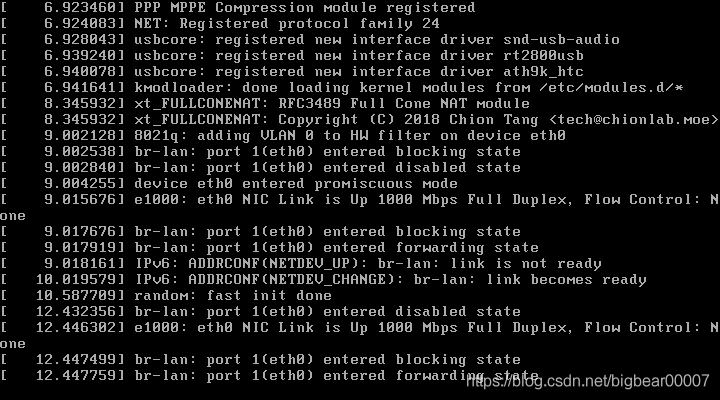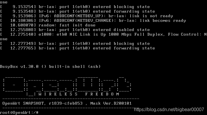 启动后会出现命名执行界面,说明 openWRT 系统启动了