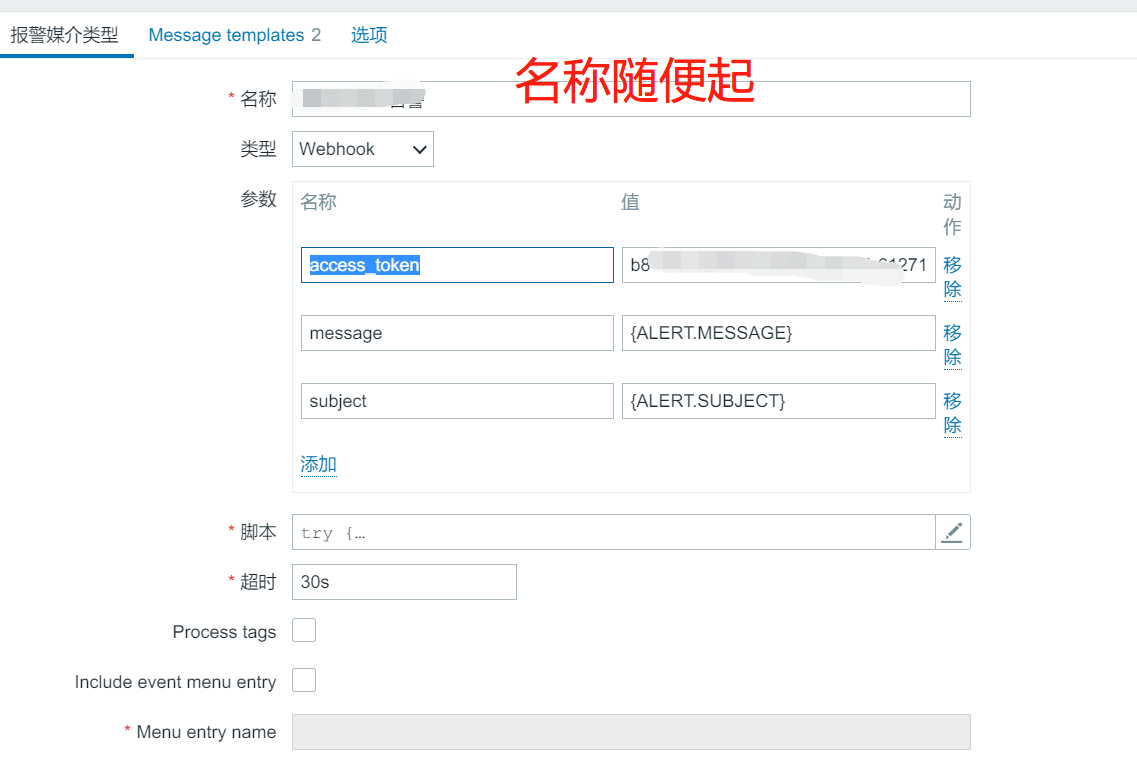 管理 --> 报警媒介类型 --> 创建媒体类型