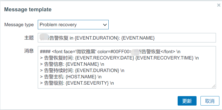 > 告警恢复时间: {EVENT.RECOVERY.DATE} {EVENT.RECOVERY.TIME} \n