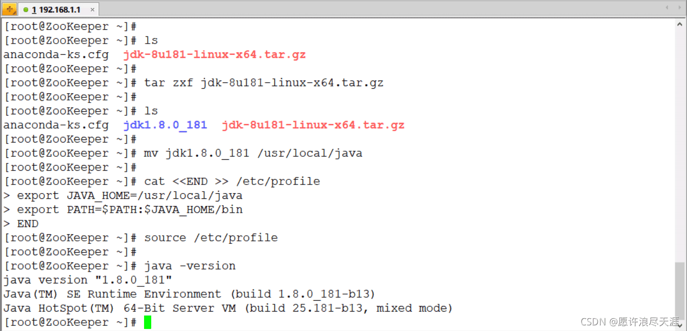 [root@ZooKeeper ~]# tar zxf jdk-8u181-linux-x64.tar.gz