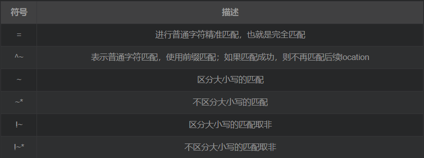 (location = 目录) > (location ^~ 目录) > (location ~ 目录) > (location ~* 目录)> (location /)