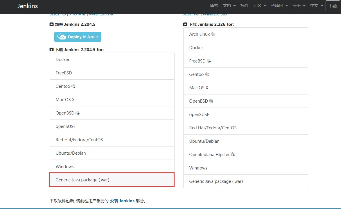 首先在Jenkins的官网下载war包: