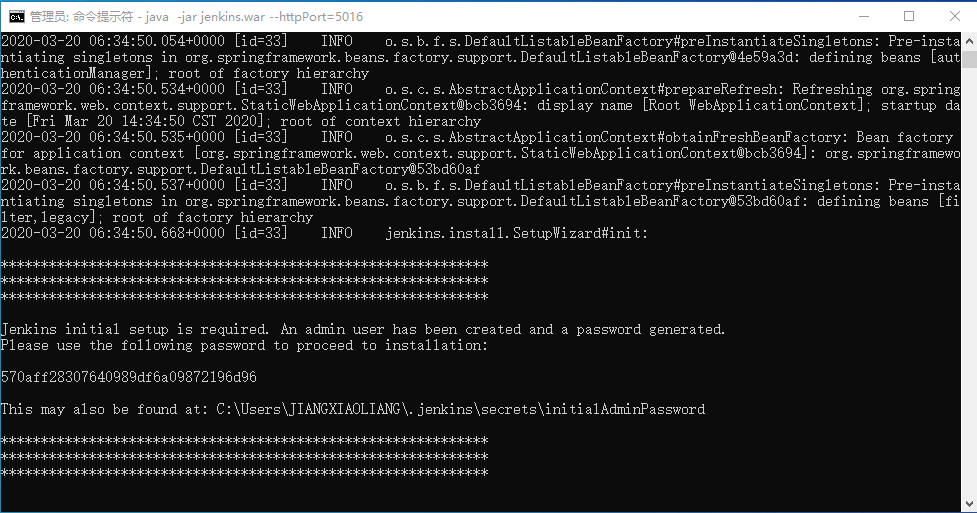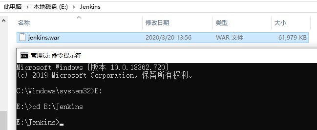 下载完成以后使用命令行的方式安装Jenkins。