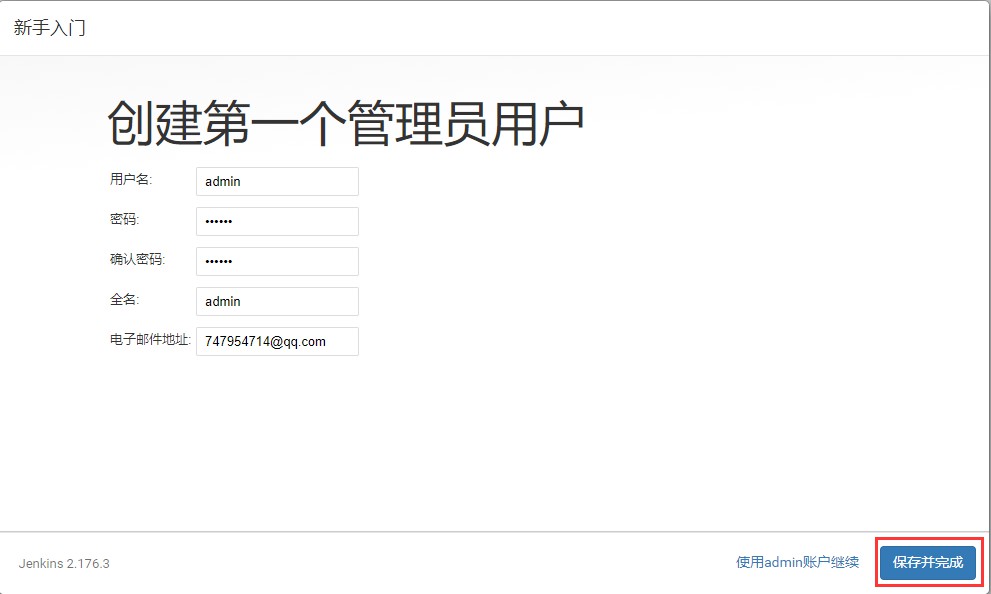 插件安装完成以后,会跳转到创建管理员用户界面,这里创建一个管理员: