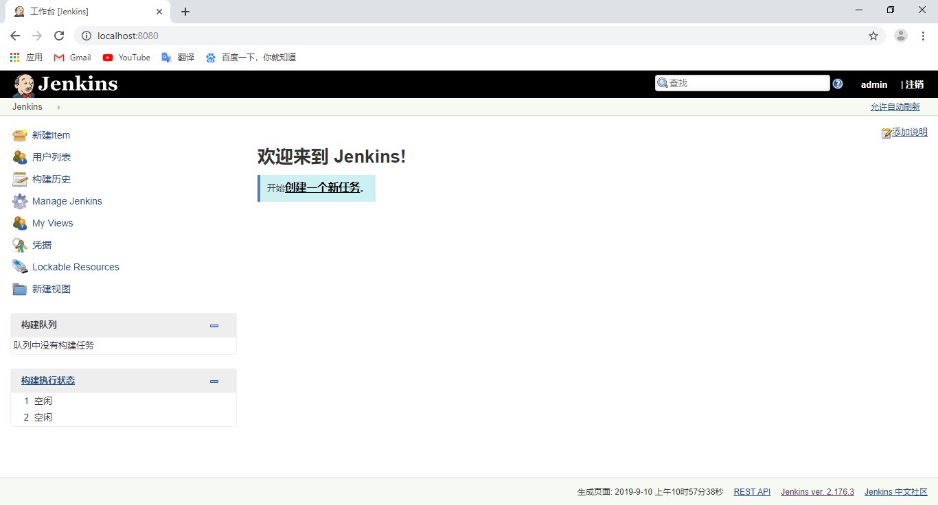 点击“开始使用Jenkins”按钮,即可进入Jenkins: