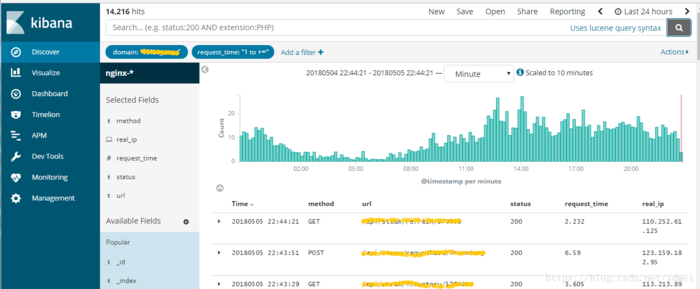 defaultColumns(默认字段): method, url, status, request_time, real_ip
