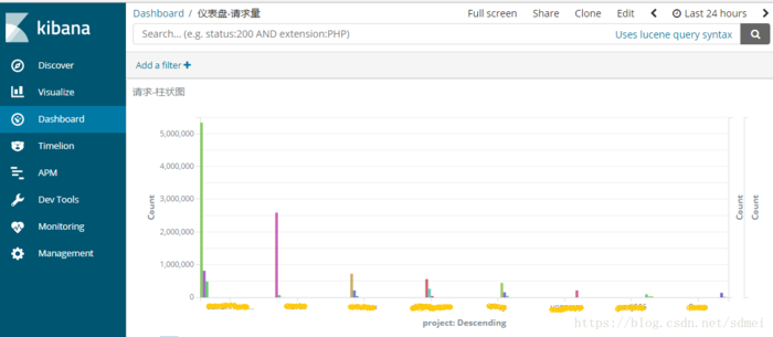 - 查询条件(精确匹配):一级域名、二级域名、客户真实IP、HTTP状态码、HTTP方法、request_time、response_time、代理IP、body_bytes_sent