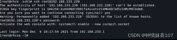 再登录220这个虚拟机就可以实现免密登录