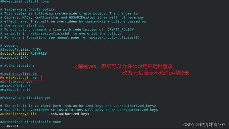 将PermitRootLogin的yes改为no