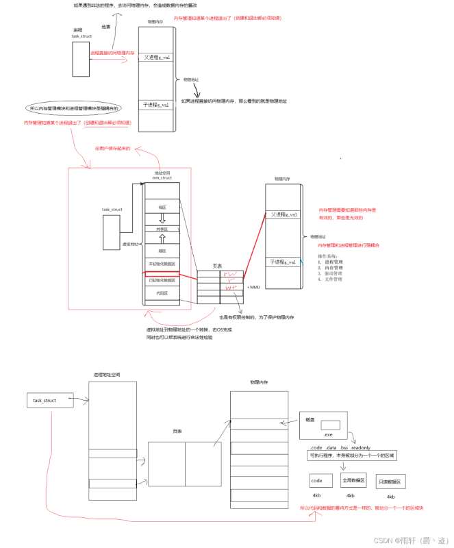 进程地址空间:是看待内存的方式,抽象出来的一个概念,内核struct mm struct,这样的每个进程,都认为自己独占系统内存资源(你认为你老爸的家产是你一个人的)区域划分:地址空间为线性,被划分成一个一个的区域,[start,end]虚拟地址:在[start, end]之间的各个地址叫做虚拟地址