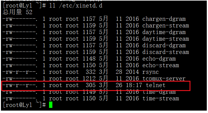 [root@localhost ~]# yum -y install telnet-server-0.17-49.el6_10.x86_64