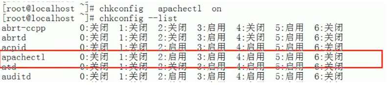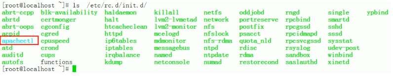 [root@localhost ~]# ln -s /usr/local/apache2/bin/apachectl /etc/rc.d/init.d/apachectl
