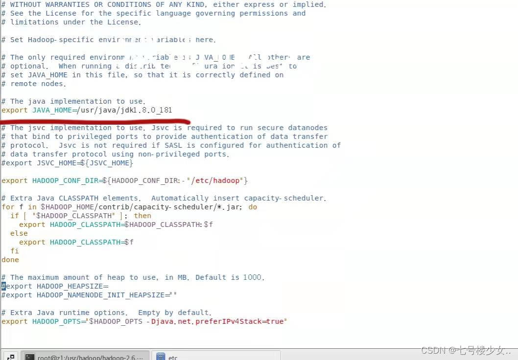 (1)进入vim hadoop-env.sh文件添加(java jdk文件所在位置)