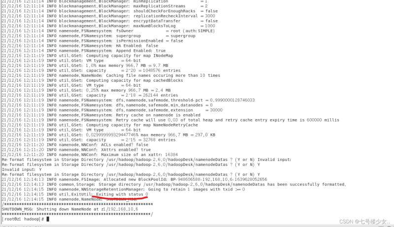 当看到Exiting with status 0时说明格式化成功