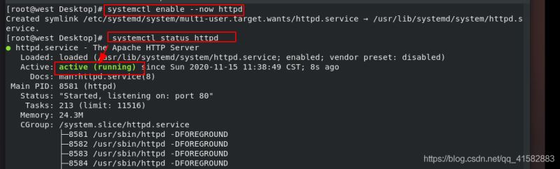 systemctl enable --nowhttpd - 查看apache服务的状态: