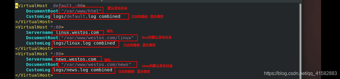 编辑虚拟主机的配置文件:vim /etc/httpd/conf.d/vhost.conf