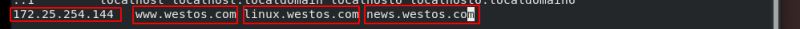 inux的默认发布文件: echo "<h1>hello linux</h1>" > /var/www/westos.com/news/index.html