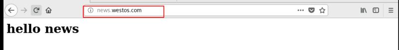 news的默认发布文件:echo "<h1>hello news </h1>" > /var/www/westos.com/news/index.html