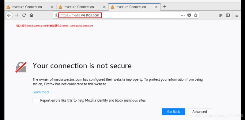 在浏览器中输入media.westos.com会自动跳转到如下界面