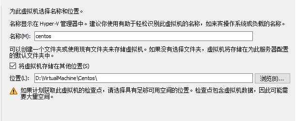 修改一个有意义的名称和设置虚拟机的存储位置(保证有一定的空间)