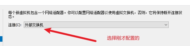 配置网络,下拉列表选择我们配置好的,然后下一步