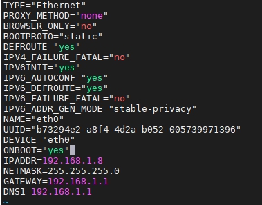 IPADDR=192.168.1.8 #分配IP,前三个段要和本机保持一致,后一个段要不一样
