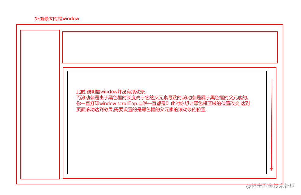 总而言之,所有情况都是因为你给一个没有滚动条的元素设置滚动条的位置。 这就涉及到一个知识点的误区: "让页面滚动到指定位置这个需求,不一定是让整个window滚动,在路由嵌套的vue页面中,window可能始终是没有滚动的,产生滚动条的是一个设置了固定高度,且子元素的高度超出了他本身的元素. 这时候,元素才会产生滚动条,而你一股脑的给window设置滚动条位置,window也蒙了"