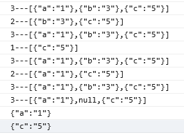 // 2---[{"a":"1"},{"c":"5"}]