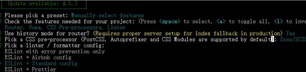 Pick a linter / formatter config 选择你的代码风格,推荐ESlint + Standard。