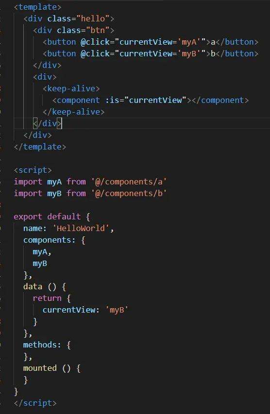 <keep-alive> 包裹动态组件时,会缓存不活动的组件实例,而不是销毁它们。和 <transition> 相似,<keep-alive> 是一个抽象组件:它自身不会渲染一个 DOM 元素,也不会出现在父组件链中。