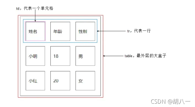 - 字母 td 指表格数据(table data),即数据单元格的内容,现在我们明白,表格最合适的地方就是用来存储数据的。td像一个容器,可以容纳所有的元素。