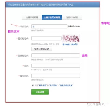 在HTML中,一个完整的表单通常由表单控件(也称为表单元素)、提示信息和表单域3个部分构成。表单目的是为了收集用户信息。
