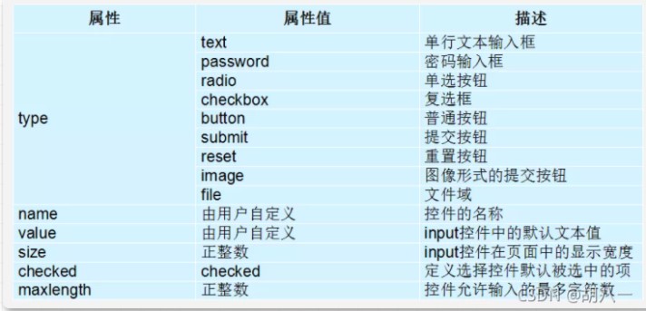 | type | 表单类型 | 用来指定不同的控件类型 |