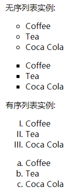 无列表默认为dist实心圆,有序列表默认为decimal阿拉伯数字(前面不带0)