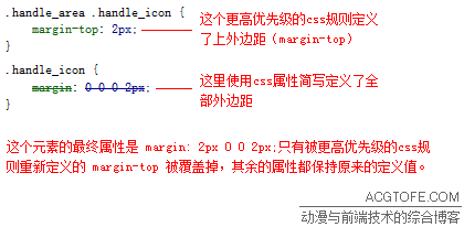 注意,前端调试工具显示的,”被划掉“的css样式,并不是说一定是完全覆盖。css中的一些组合属性(比如margin,可以拆分为margin-top、margin-right、margin-bottom、margin-left),在这种样式覆盖中遵循的是局部覆盖的原则,即使在前端调试工具中它们看起来“整个都被划掉了”: