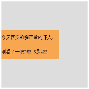 <div id="child">今天西安的霾严重的吓人,刚看了一眼PM2.5是422</div>