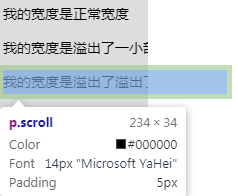 <p class="scroll" title="我的宽度是溢出了一小部分">我的宽度是溢出了一小部分</p>