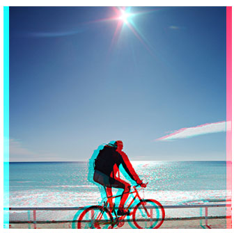 给两张同样的图片,叠加上 青色#0ff和 红色#f00,并且错开一定的距离,两张图都要加上background-blend-mode: lighten,其中一张再加上mix-blend-mode: darken: